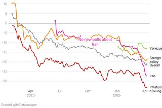Approval how how he's handling foreign policy, prices, and the presidency in general has fallen in the wake of the conflict